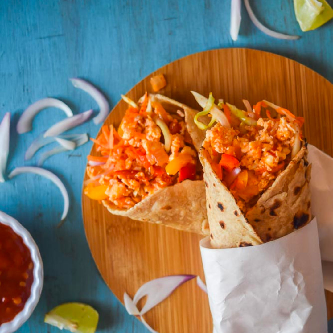 Flavourful veggie wrap, tangy sauces, an irresistible Indian street delight.